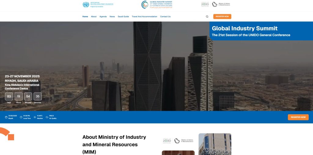 In anticipation of this landmark gathering, the Ministry of Industry and Mineral Resources, in partnership with UNIDO, has unveiled the official GC21 website. Far from being a logistical tool, the platform serves as a digital gateway to one of the most important global industrial events of the decade — connecting delegates, amplifying dialogue, and offering a seamless, culturally rich entry point to the Kingdom’s vision of progress under Vision 2030.