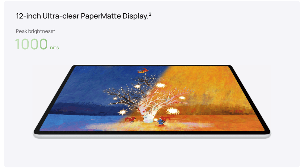 MatePad 12 X covers 100% sRGB / 96% DCI-P3 with Delta E <1, suitable for professional color work. The etching diffuses reflection but doesn’t distort color. For critical workflows, calibration is recommended—as with any pro display.
