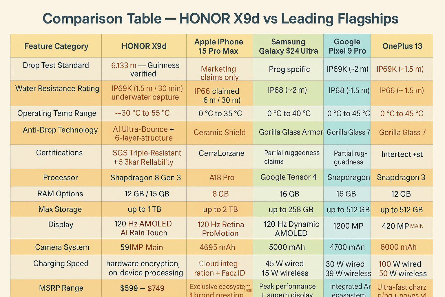 لكي نفهم حقًا أهمية HONOR X9d، يجب أن نضعها في السياق ضد الأجهزة الأخرى الرائدة في 2024-2025.
