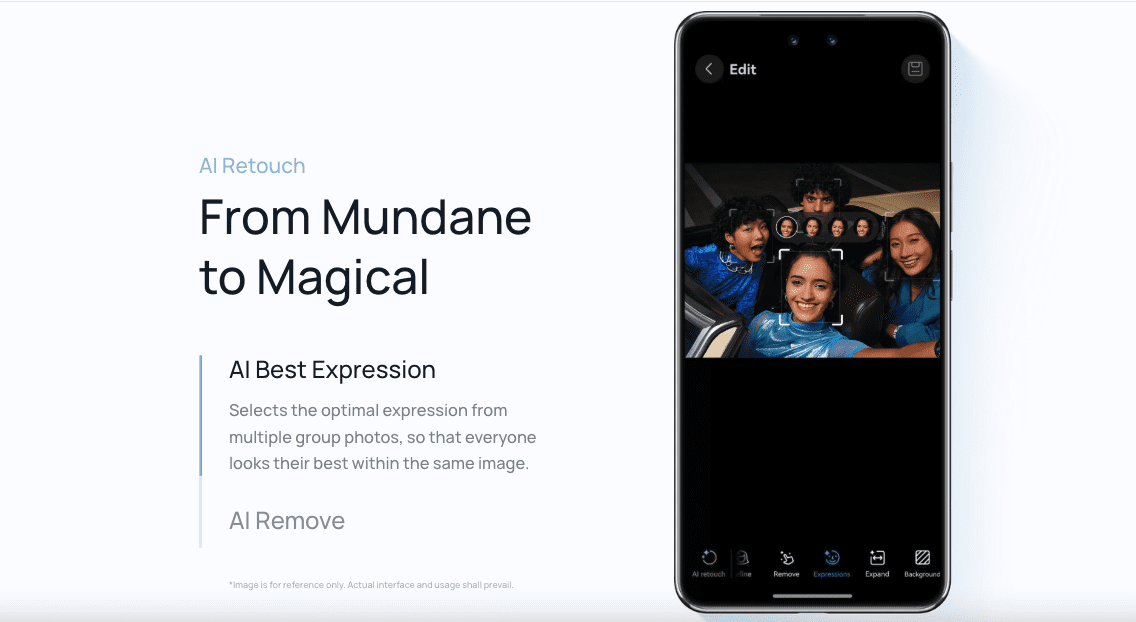 لا. كل معالجة الصور الشخصية تحدث على الجهاز. الصور تبقى على جهازك إلا إذا قررت عمل نسخة احتياطية إلى Huawei Cloud (التي تكون مشفرة من طرف إلى طرف). لا تستخدم هواوي بيانات صورك الشخصية لتدريب نماذج ذكاء اصطناعي أوسع. عمليتك الإبداعية—كل تعبير تختاره، كل عيب تعالجه—تبقى خاصة حقاً.