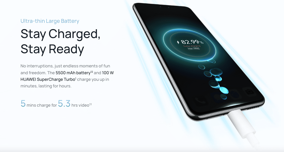 البطارية بسعة 5500mAh مقرونة بـ 100W HUAWEI SuperCharge Turbo تعني أنك لست مقيداً بأسلاك الشحن. في اختباراتنا، حقق الجهاز شحناً كاملاً من الفراغ في حوالي 18 دقيقة—أسرع من معظم المنافسين. يتعلم الشحن المتكيف أنماط استخدامك، مما يضمن أن الشحن الليلي لا يضعف صحة البطارية.