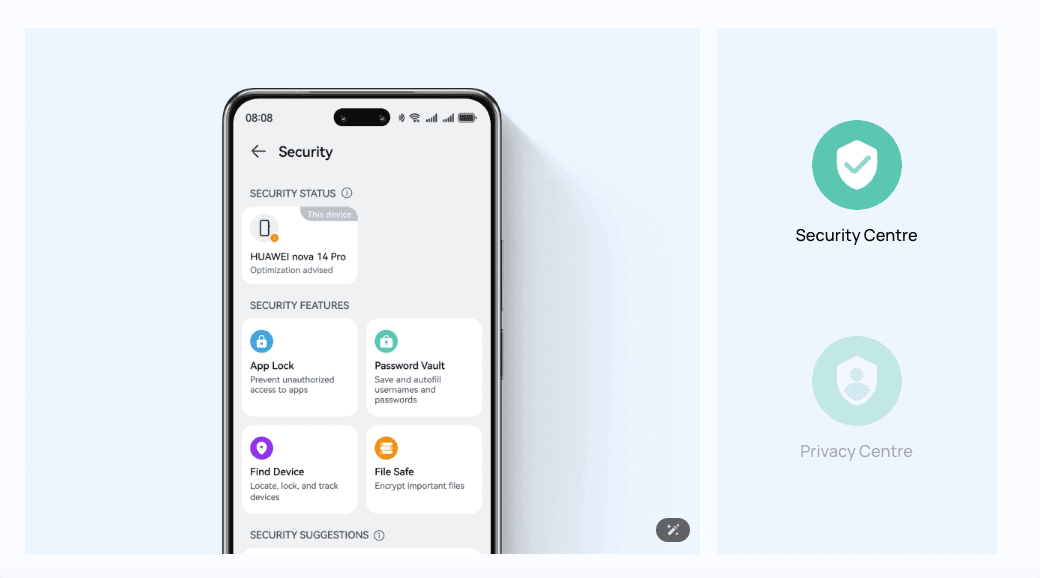 عمارة بدون معرفة: طبّقت هواوي ما يسميه خبراء الأمن السيبراني “عمارة بدون معرفة” عبر النظام البيئي لنوفا 14 برو. هذا يعني حتى هواوي نفسها لا يمكنها الوصول إلى بيانات شخصك. مفاتيح التشفير موجودة فقط على جهازك. هذا ليس أمناً نظرياً؛ إنه أمن مفروض رياضياً.